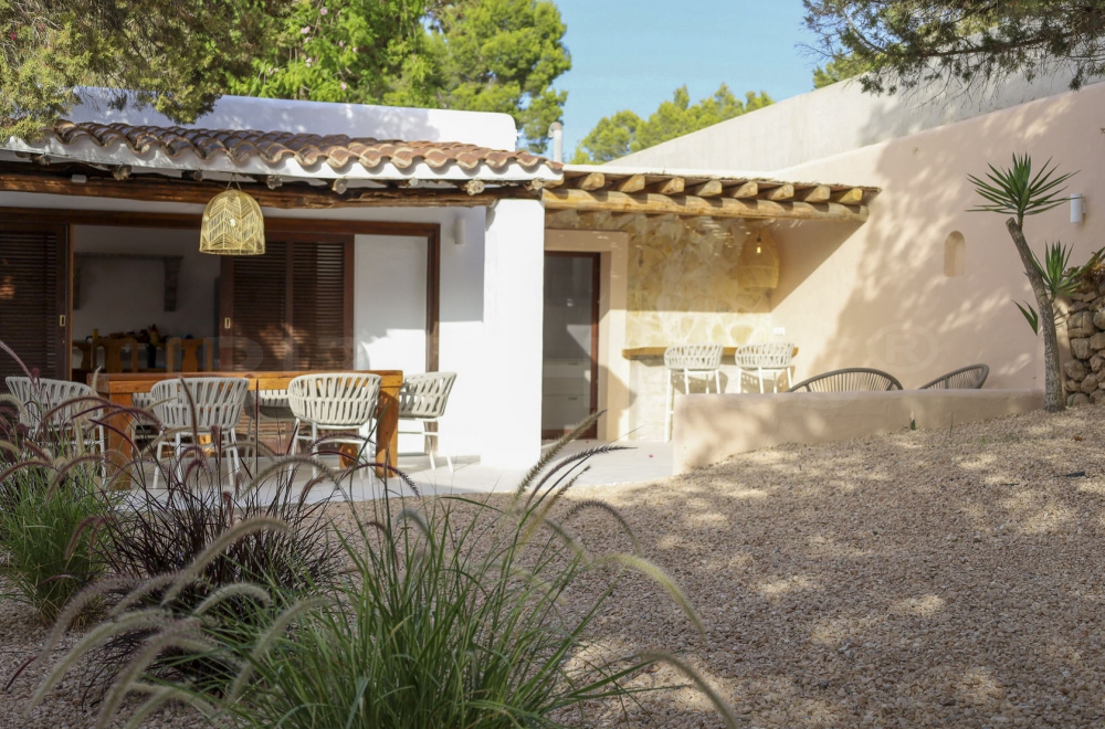 Can Rafelet is set in the peaceful surroundings of Cala Tarida and spans a generous 1,000 m² plot. The villa offers 3 + 1 bedrooms with spectacular views of the sea and the breathtaking sunsets that paint the sky in warm colors. It is an excellent choice for families or groups of friends seeking a relaxing holiday in a residential area.