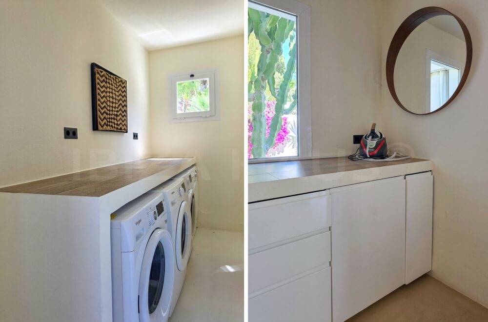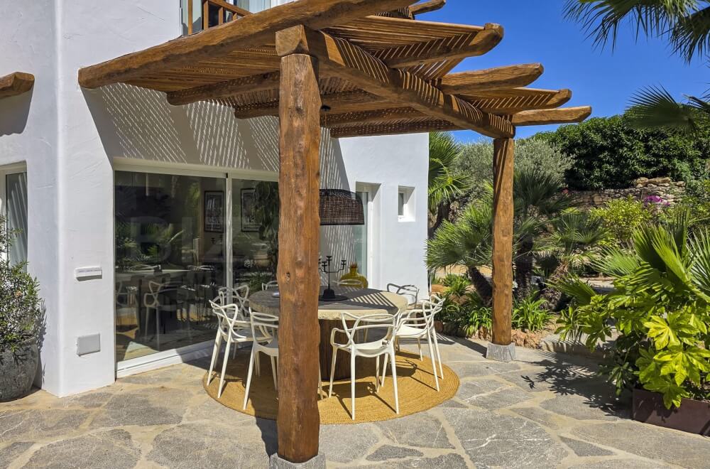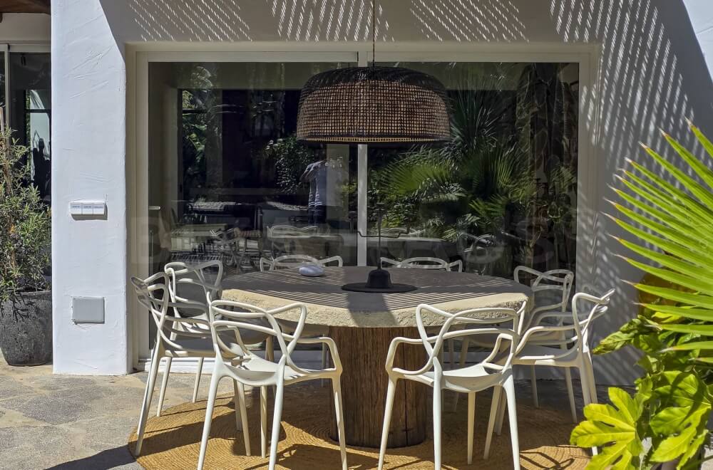 Here, you can enjoy complete privacy, with a wonderful large pool and a fantastic chill-out area featuring many lounge and sunbeds, as well as plenty of space! The large garden, beautifully landscaped with Mediterranean plants and trees, is perfect for relaxation and rejuvenation. There is even a dedicated yoga space.