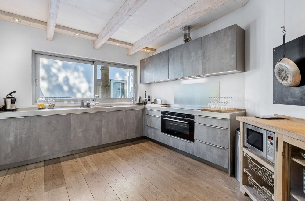 Das Interieur der Villa verbindet helle Baumwollstoffe, gebleichtes Holz und modernes Design zu einer eleganten, zeitgemäßen Küstenatmosphäre. Hochwertige Möbel, ausgewählte Kunstwerke und stilvolle Beleuchtung unterstreichen den exklusiven Charakter. Die professionell ausgestattete Küche mit edlen Edelstahl-Elementen öffnet sich zu einem großzügigen Essbereich - ideal für gesellige Abende in entspannter Atmosphäre.